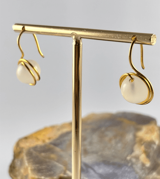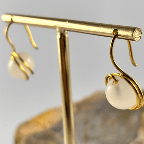 La calcedonia blanca destaca por su apariencia serena y su capacidad de combinar fácilmente con diferentes estilos, haciendo de estos aretes un accesorio versátil y atemporal. Resistentes, cómodos y llenos de encanto, son ideales tanto para uso diario como para un regalo especial.